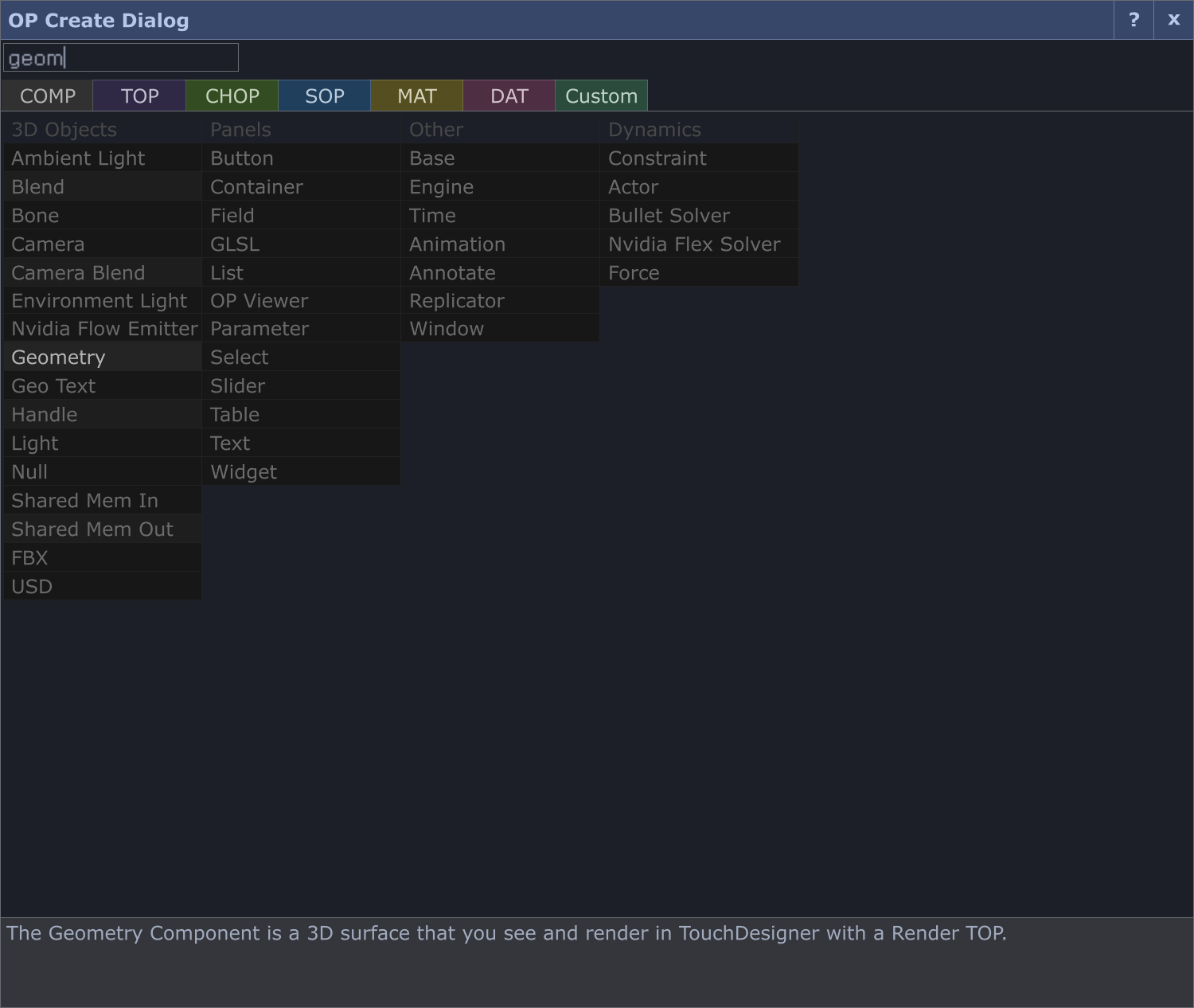 2. Touch DesignerでGeometryCOMPを作成する